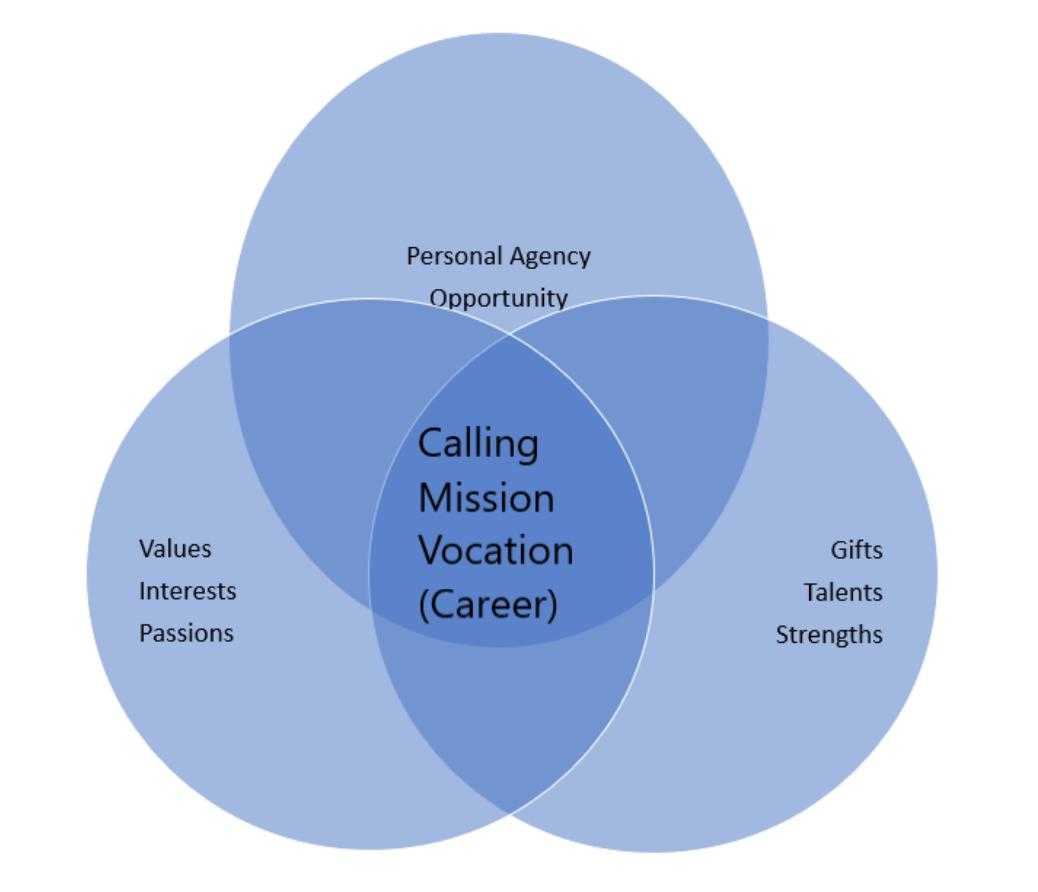 Our goal in life is to reach a clear sense of calling, mission or vocation. This can be achieved when your values and passions meet your gifts, talents and strengths, while making the most of personal agency and opportunity.
